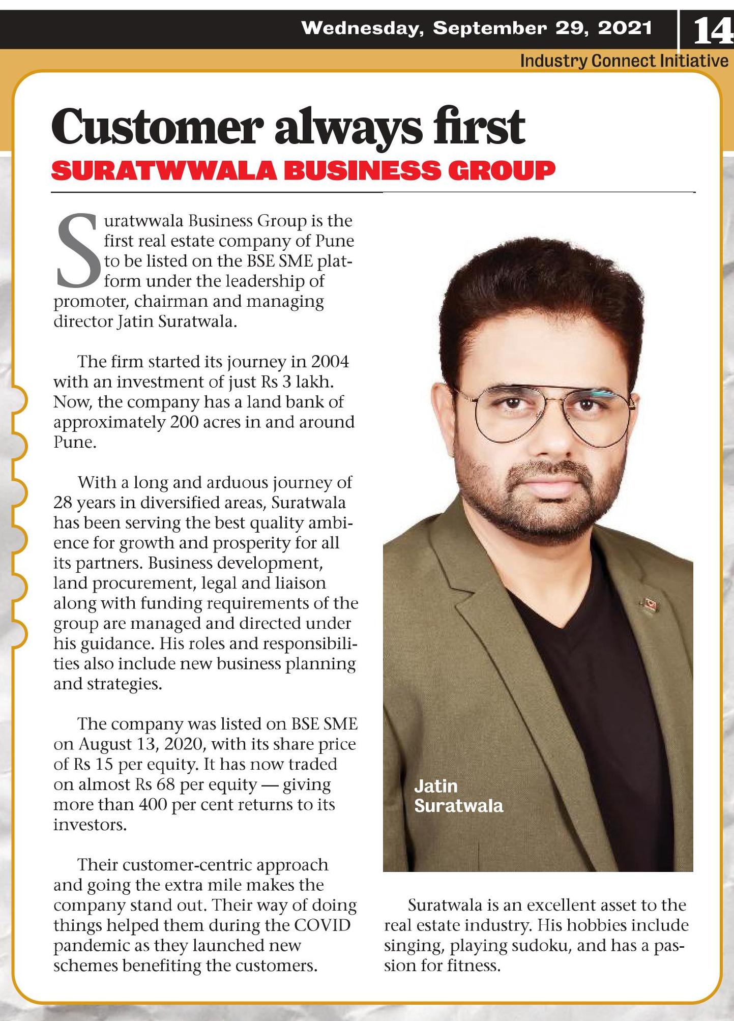 A new dynamic is set to propel the Pune's real estate market post pandemic once another, read what Jatin Suratwala, Managing Director of SURATWWALA BUSINESS GROUP, has to say on it. read coverage of an Article published on "Construction Week" on 27th August 2021.