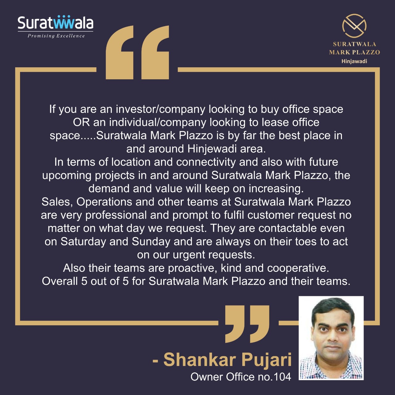 Select and own the perfect working space for your business or profession and see your fortune grow at Suratwala Mark Plazzo.